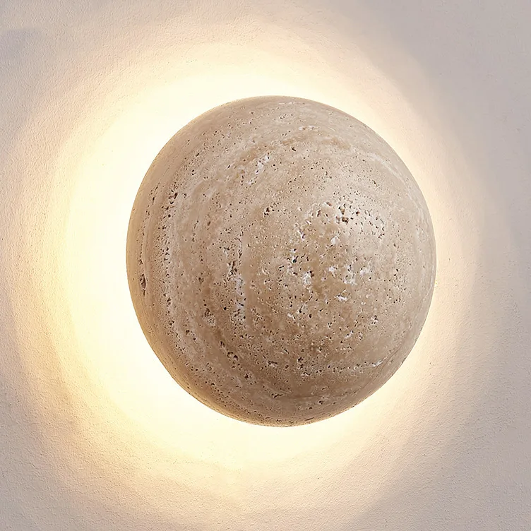The Gjøvik Wall Light combines natural stone beauty with versatile ambient illumination, bringing a serene, sculptural touch to any interior. Crafted from authentic travertine stone, its half-round, minimalist Nordic form creates a soft, inviting glow that enhances bedrooms, living rooms, hallways, or cozy corners. Each lamp features the unique texture and pattern of natural travertine, making every piece a one-of-a-kind work of art.